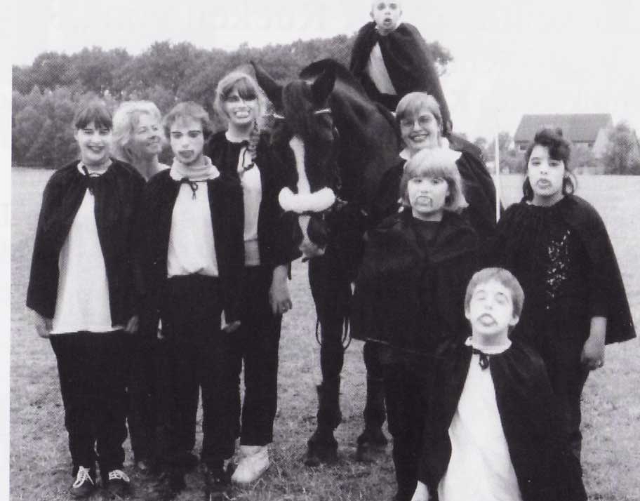 Als Vampire "schauerlich" geschnikt präsentierte die Voltigruppe der Schule i.d. Widum ihr Können auf "Royal". Mit dabei Sigrid Schliek an der Longe und Conny Reuter.